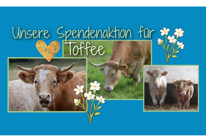 Aktuell läuft eine Paypal Spendenaktion für unser Rind Toffee, ihm fehlen leider 75€ monatlich, und wir möchten versuchen ihn für 6 Monate abzusichern.
