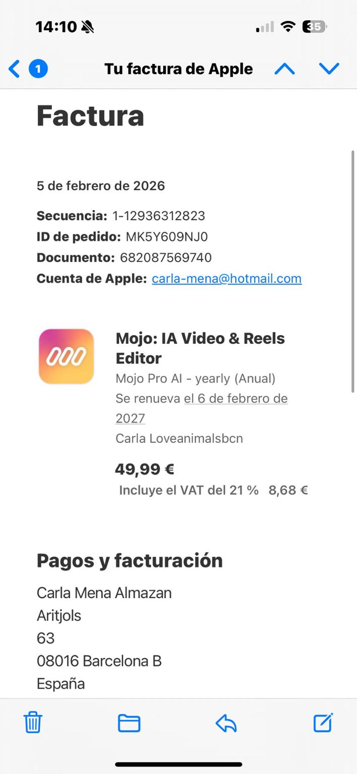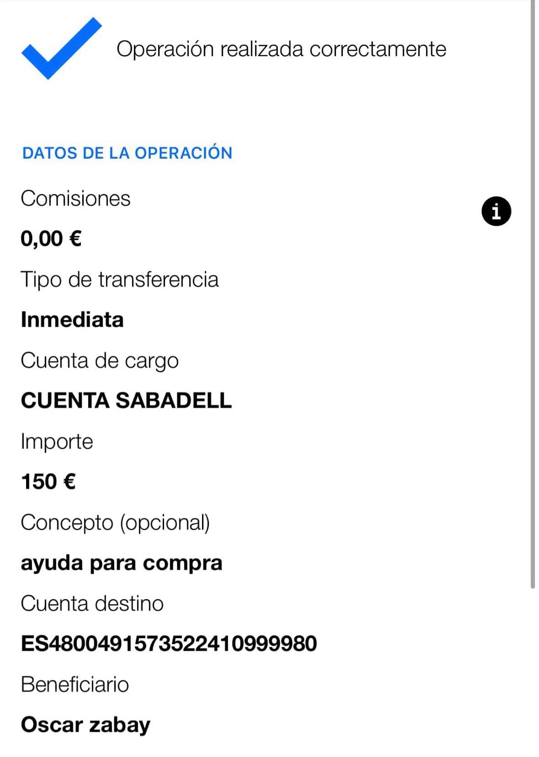 Transferencia realizada a una familia que adoptó hace años a un gatito enfermo nuestro y hoy tienen problemas económicos y están en riesgo de deshaucio. Les ayudamos con comida para los animales para ellos