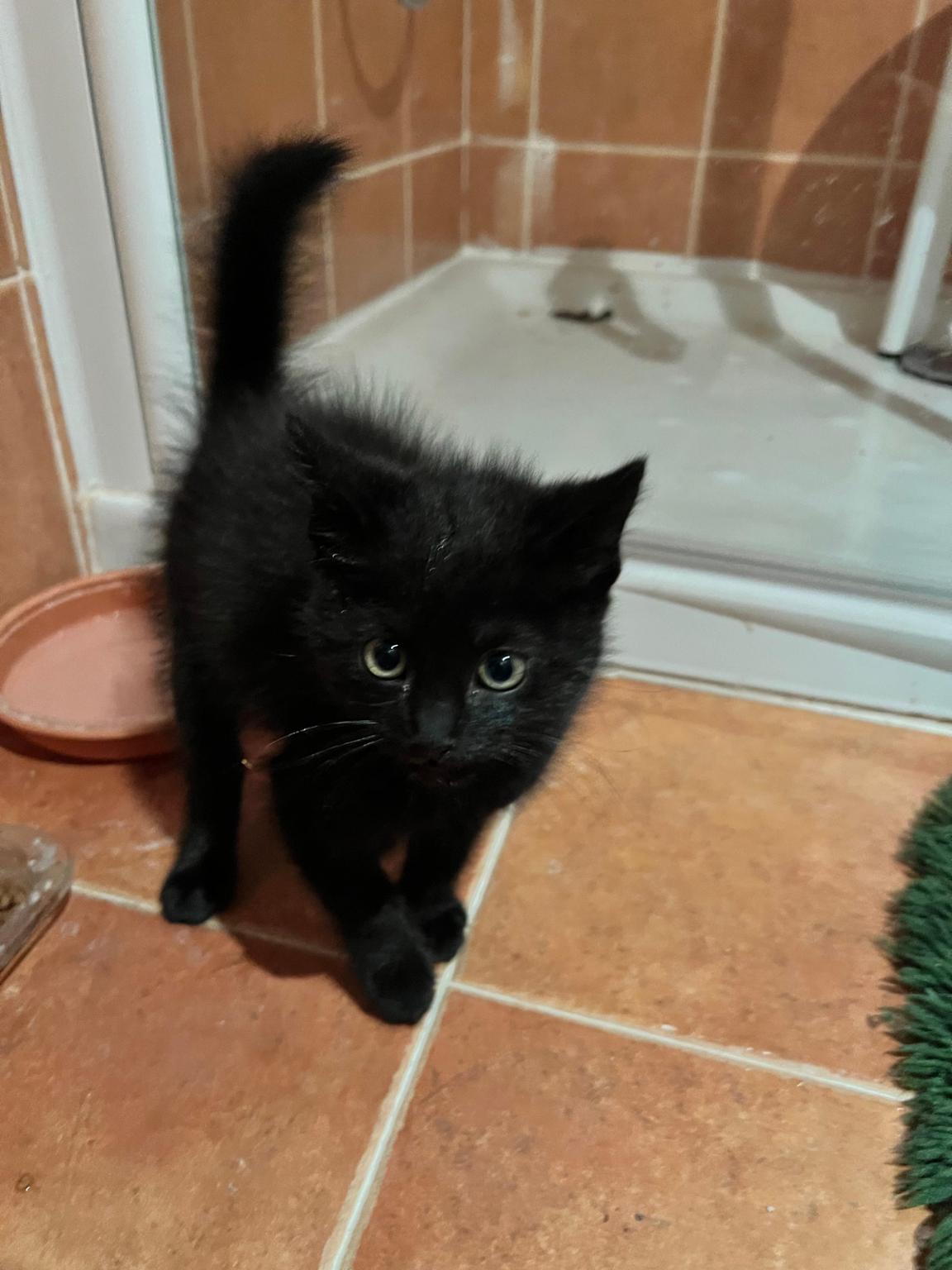 Hemos recogido un gatito de un mes de edad, está cojo, con una infección enorme en los ojos y un catarro tremendo. Necesita cuidados veterinarios para intentar sobrevivir. Ayudara a Zeus a luchar por su vida