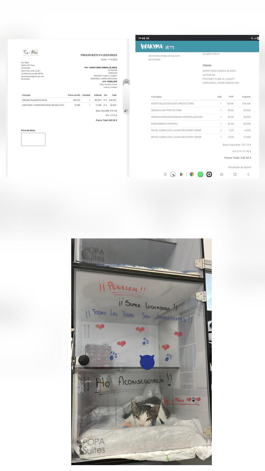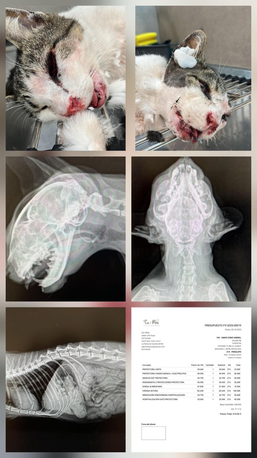Bel, nuestra veterinaria, la está cuidando en la clínica; la está alimentando por sonda y haciendo las curas..., no os podéis imaginar el amor y la vocación que hay que tener para lo que Bel esta haciendo por Penélope
