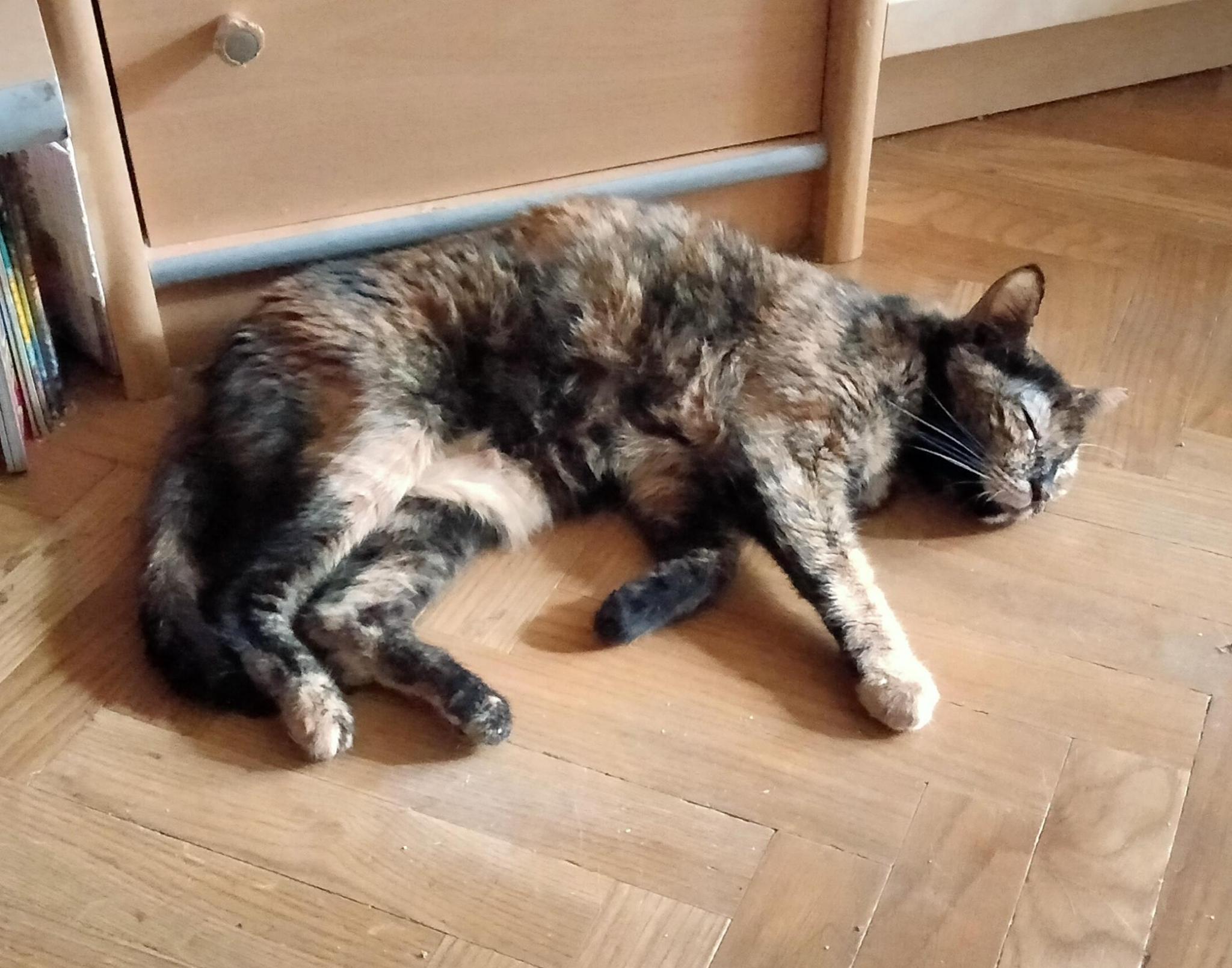 Nymeria fue atacada por uno de los michis más jóvenes de La Gaticasa hace un par de semanas. Ella no quería jugar y parece que no le hizo mucha gracia, así que, la mordió. Los euros de este mes ayudaron a pagar el tratamiento. Nymeria ya está completamente recuperada, aunque tiene toda la zona sin pelo, ya no hay herida. Gracias por seguir apoyando mi labor