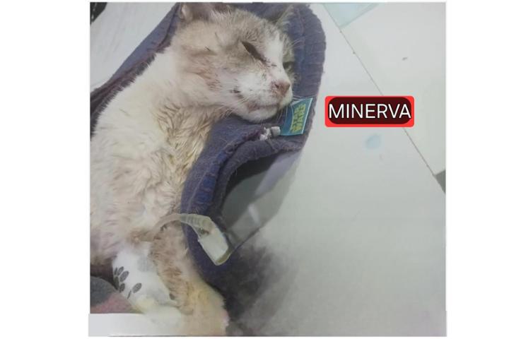 Ahora hemos encontrado a MINERVA en un estado lamentable, totalmente deshidratada, caquesica, llena de moscas y dejándose morir. Está ingresada desde el sábado y queremos luchar por ella.