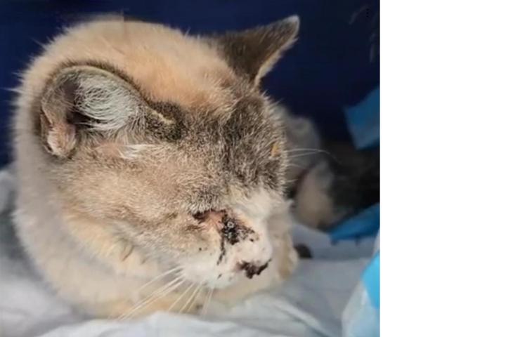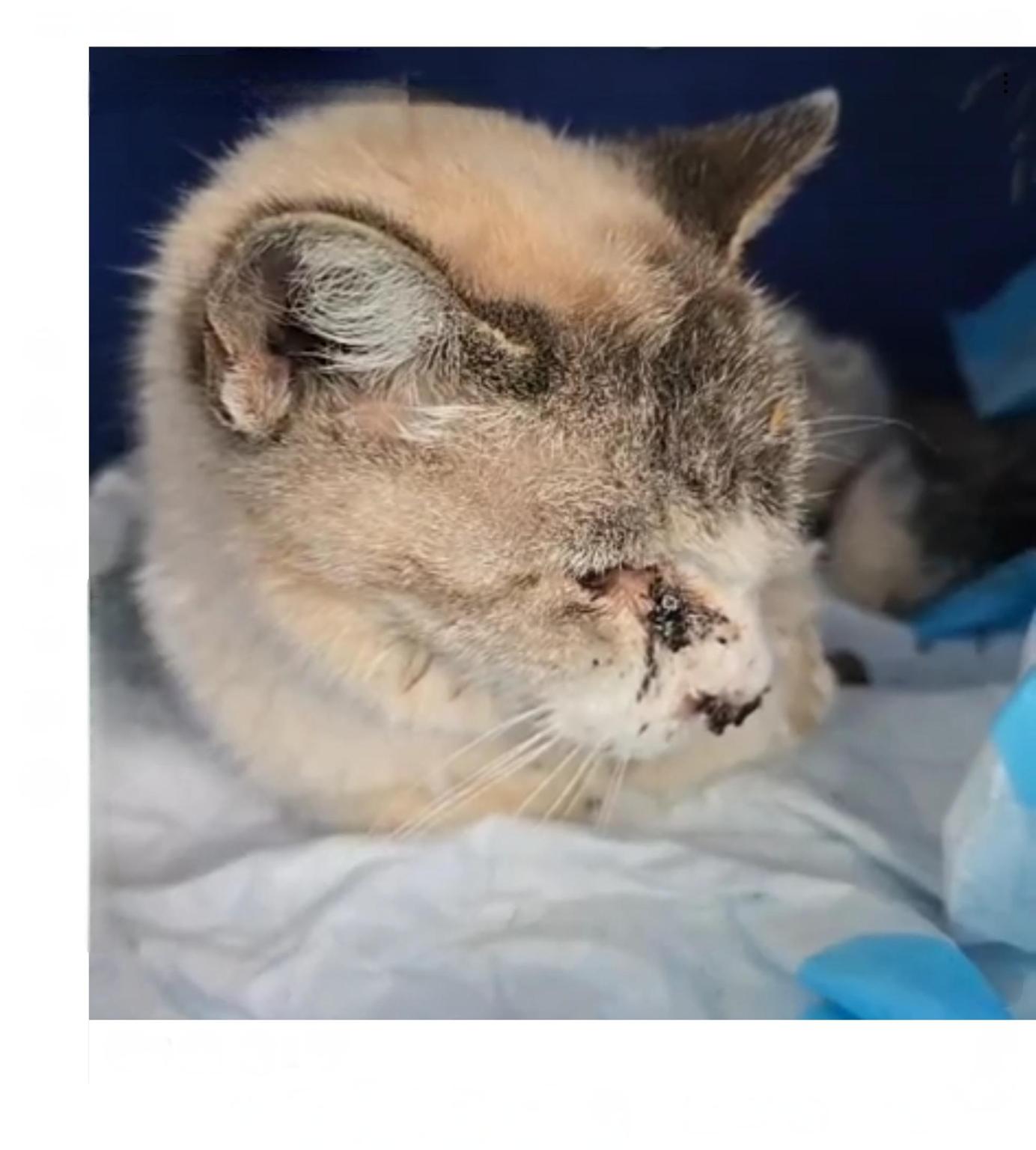 Hemos rescatado de la calle a PENÉLOPE, una gatita que seguramente debido al maltrato de alguna mala persona, estaba en muy mal estado. Tenía la mandíbula rota, parte de la lengua necrosada y con problemas de visión.