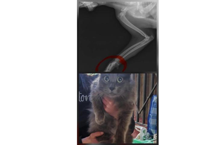Ahora ya con una radiografía, sabemos que Hummus seguramente fue atropellado, ya que tiene la pata fracturada. Es operable, pero debe hacerlo un traumatologo externo y por ello necesitamos reunir el dinero lo antes posible, porque Hummus lleva semanas con ese dolor