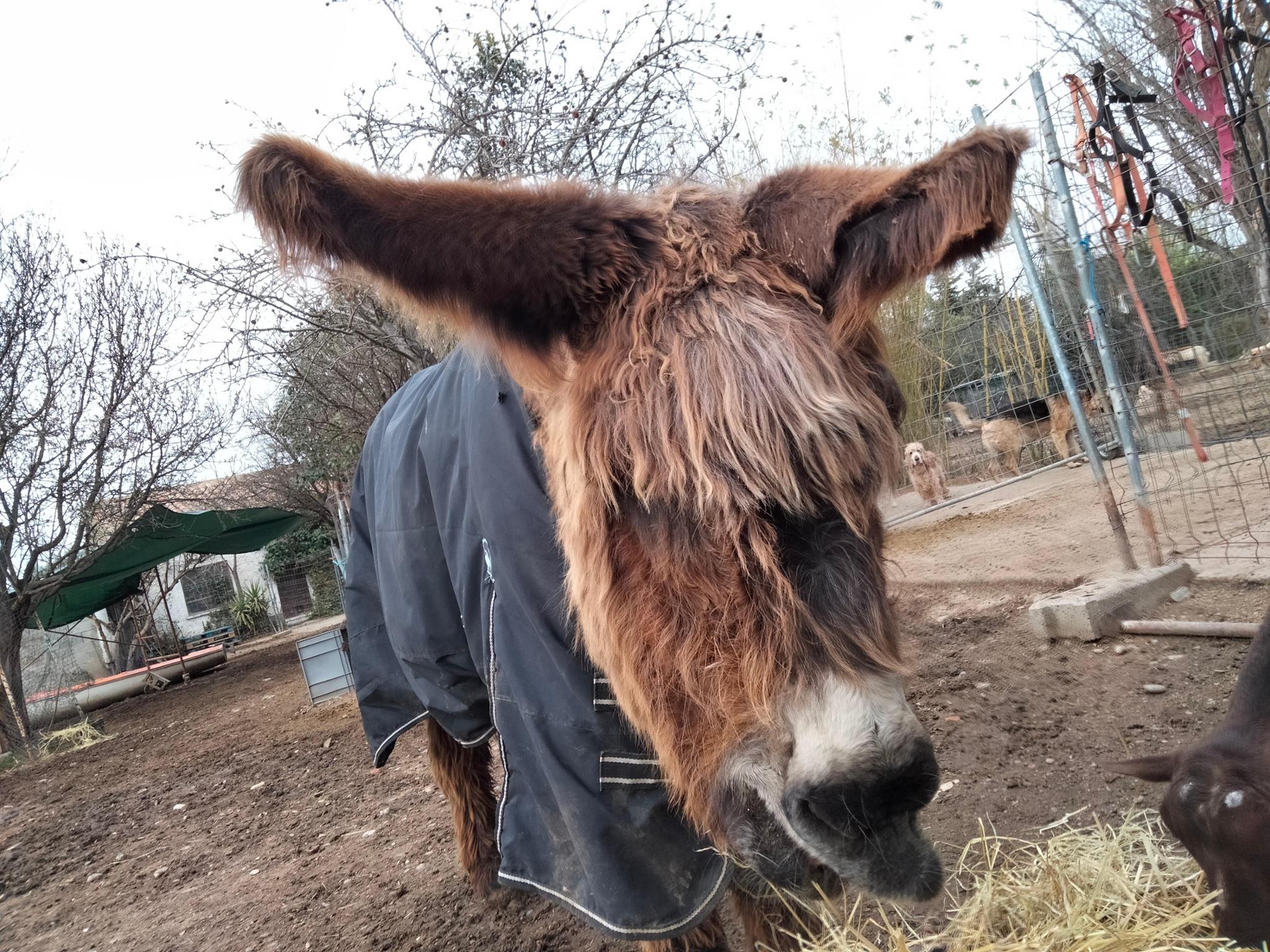 Dorita es una burrita de 26 años, que la mujer que la tenía, nos pidió ayuda porque cuando Dorita se tumba, no puede levantarse sola y ella ya no puede ayudarla a levantarla.