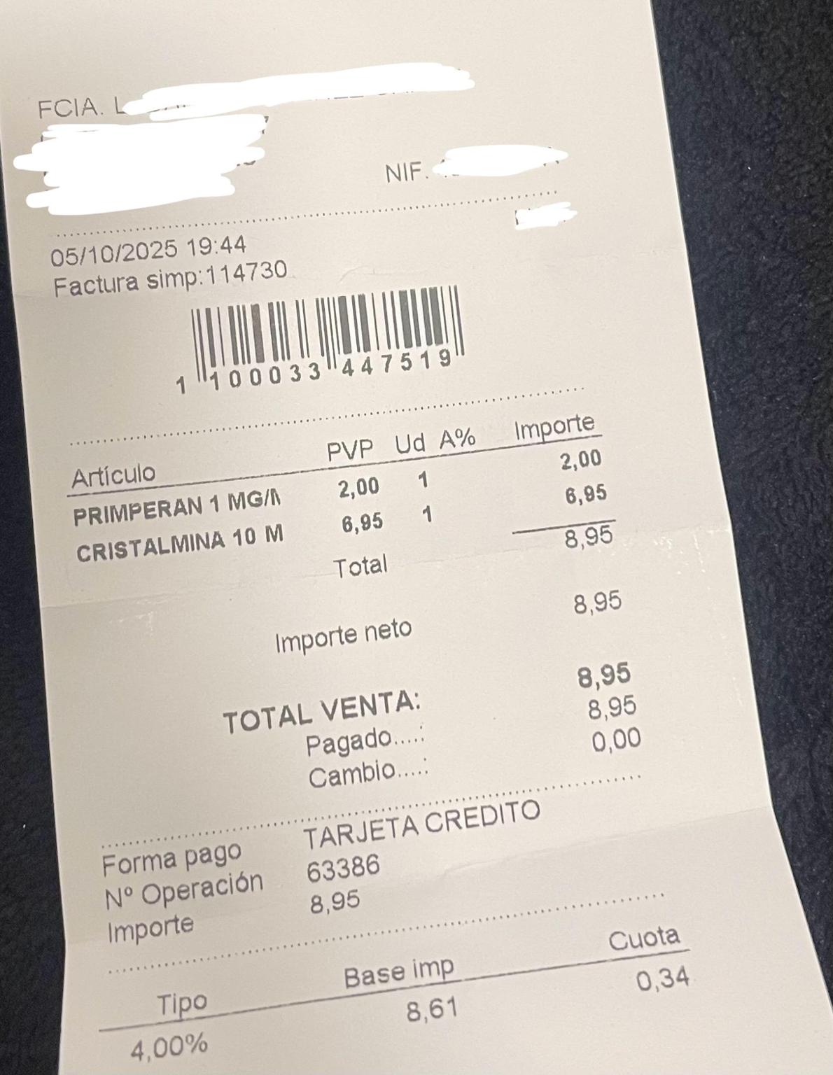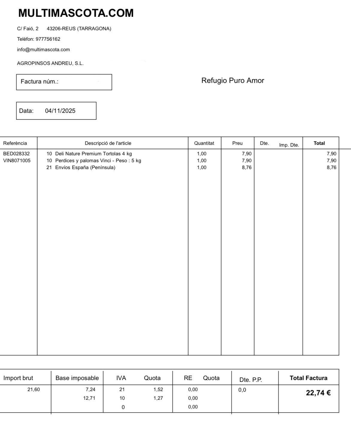 Factura 280Alimentación 22€