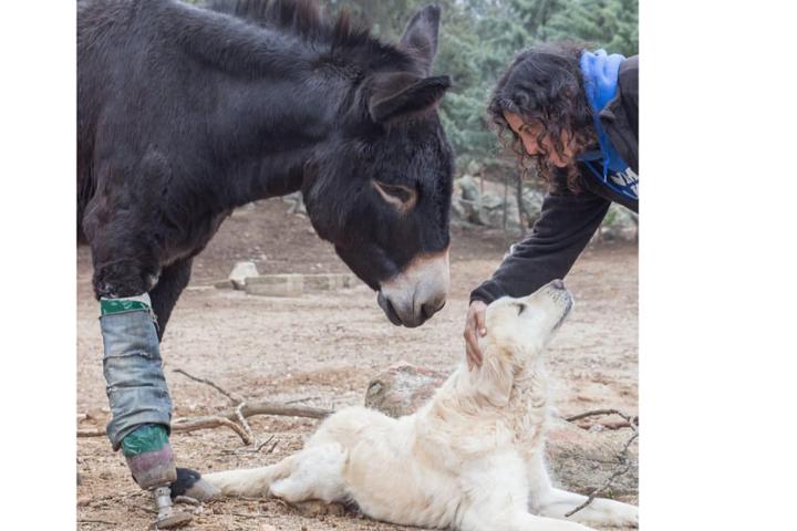 Estamos tristes porque ya llevamos 5 pruebas para la prótesis de Dani y las 5 le han hecho daño en el muñón. El ortopedista no está acertado y cuando arregla un problema hay otro que se le ha olvidado tener en cuenta y la prótesis da otro problema. Así llevamos desde enero. vemos a por la sexta prueba y esperemos que sea la definitiva. Hemos pagado la mitad de la prótesis y por desgracia, debemos tener paciencia porque no hay mucha gente en España que quiera hacer una prótesis a un burro, a pesar de que hace ya 11 años que Dani es el primer burro con prótesis del país. Seguimos adelante por ellos y gracias a vosotros.