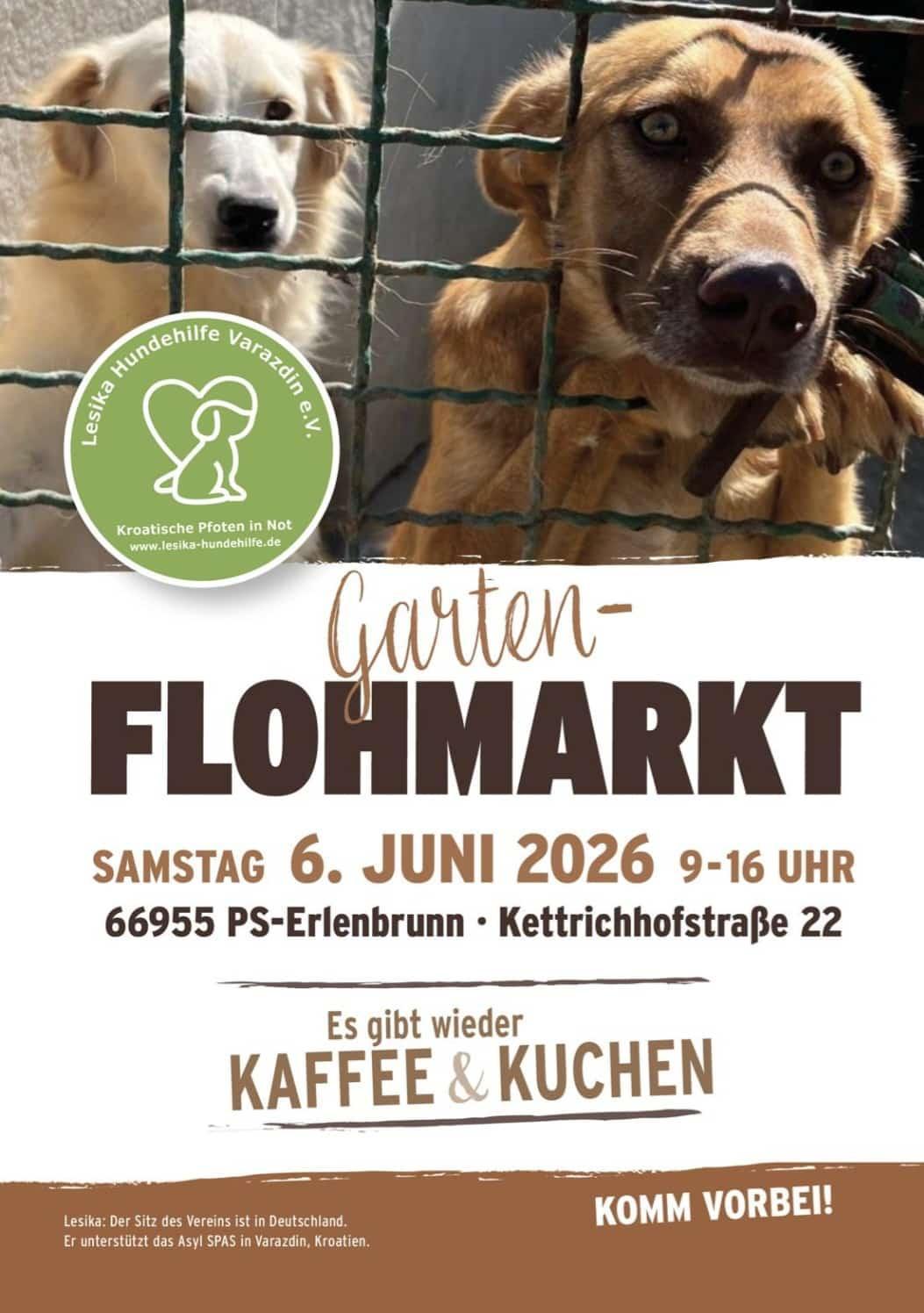 Am 06.06.2026 findet ein Gartenflohmarkt statt, bei dem die Lesika Hundehilfe Varaždin e. V. und damit auch die Hunde im Asyl Spas unterstützt werden.