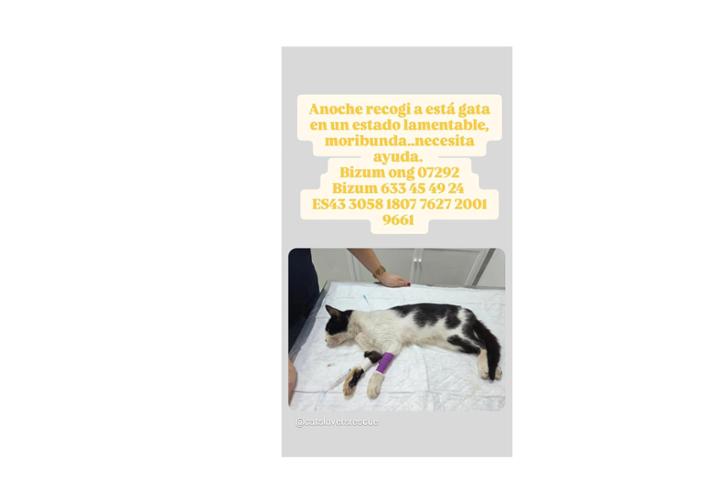 Puedes Donar desde la plataforma o dejo formas adicionales,también podéis Donar directamente a la clinica kato de sevilla a nombre de CatsloversRescue ( vanesa).