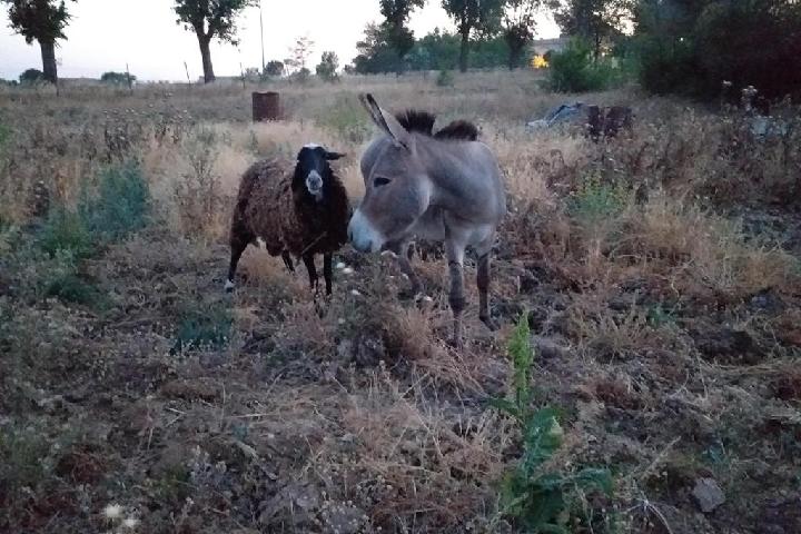 Bueno, aunque el terreno aún no está muy en condiciones, desde hoy tiene nuevos habitantes. El burrito Federico y la oveja Tomasa, junto con Julieta, ya están acoplados en él. Federico y Tomasa son víctimas del fuego de Cadalso. Su papi ha perdido mucho, pero no a ellos. Estarán aquí hasta que su familia vuelva a tener un hogar