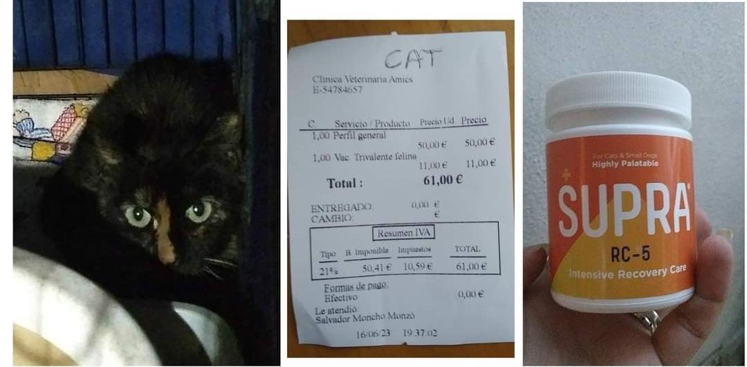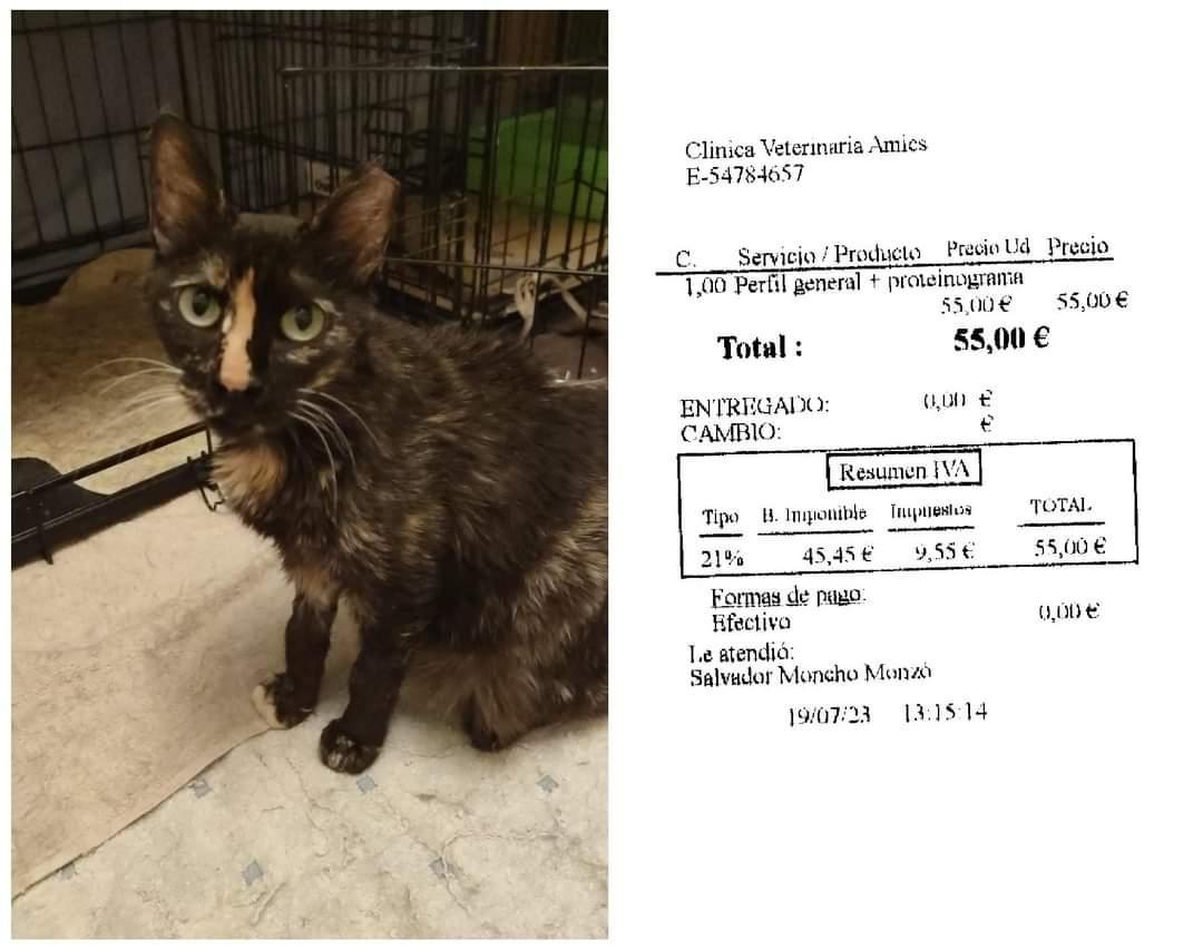 El viernes estuve en el veterinario y gracias a lo que sobró de lo recaudado para pagar la prueba de Tita, algo más que he vendido y un donativo que me dejaron en un sobre allí en el veterinario ❤️ pude pagar dos de los tickets atrasados (un total de 155'50€), que se debían desde mayo y junio, de Cat.