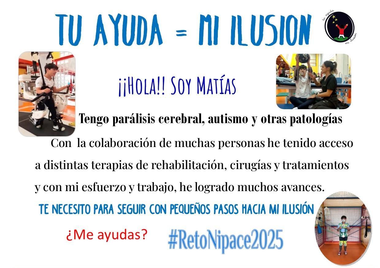 Os pedimos colaboración para conseguir que Matías vuelva a tener su Tratamiento de Neurorrehabilitación Intensivo Especializado en el Centro Nipace de Guadlajara (ESpaña) en octubre de este año.