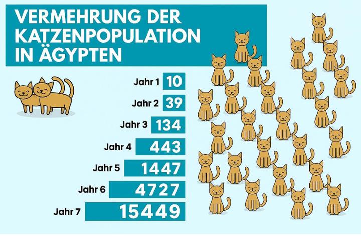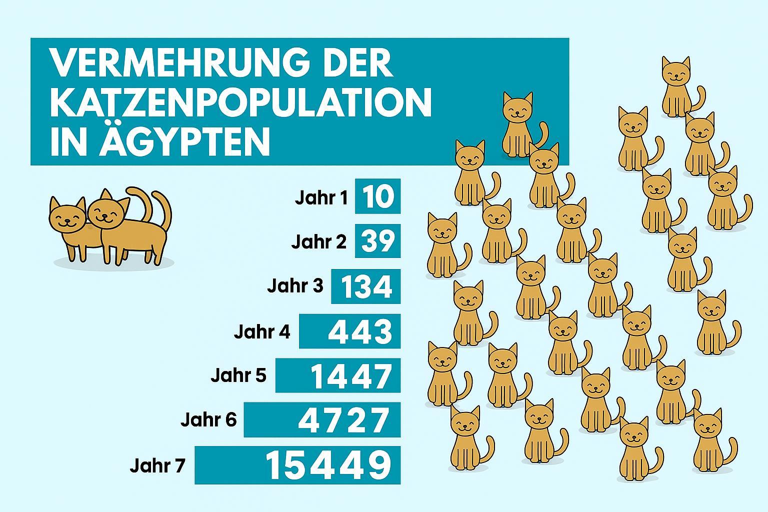 ➡️ Sehr konservativ gerechnet wächst die Zahl in nur 5 Jahren von einer einzigen Katze auf über 1 400 Tiere.