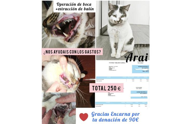 - OPERACION BOCA ARAI. Exodoncia completa en 2 cirugías. La primera con analítica de 160€ (la segunda de 90€ fue sufragada con una donación de Encarna).