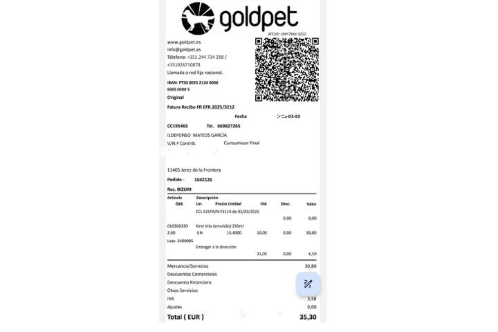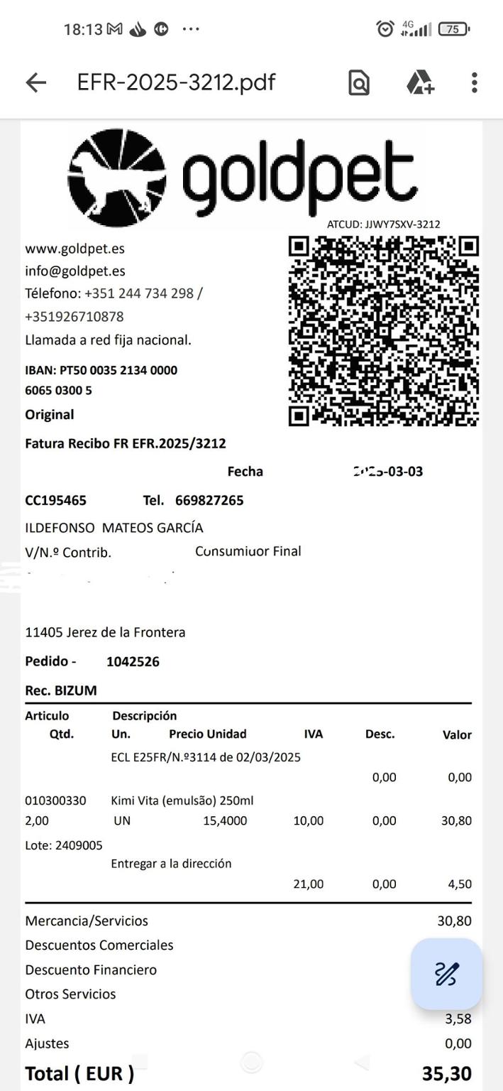 He subido para la información del grupo la factura correspondiente a la cuarta compra de vitaminas realizada en el mes de Marzo pasado.