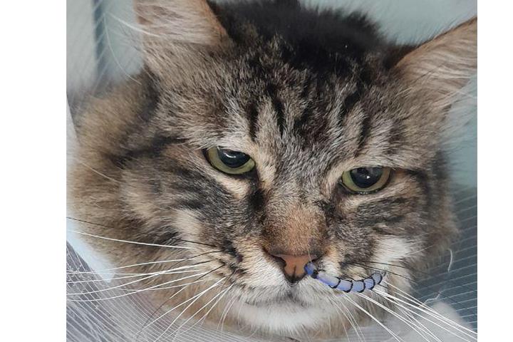 O'Hara es positiva en leucemia, tiene tres años, está desparasitada, vacunada, chipada y esterlizada.