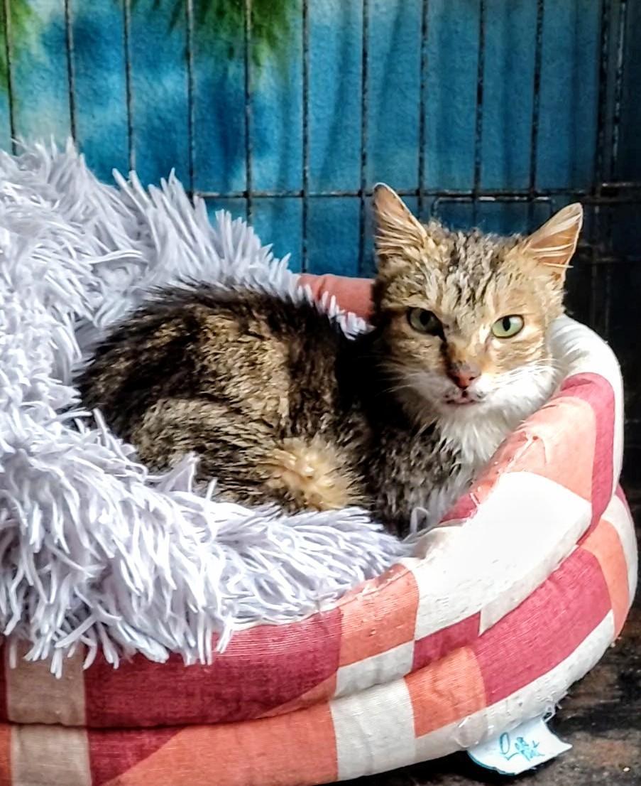Oggi Dina, la gattina recuperata due settimane fa dalla Colonia di Licenza dove si era presentata magrissima e sofferente, verrà sottoposta a biopsia per capire la natura della massa mediastinica rilevata dall'ecografia.