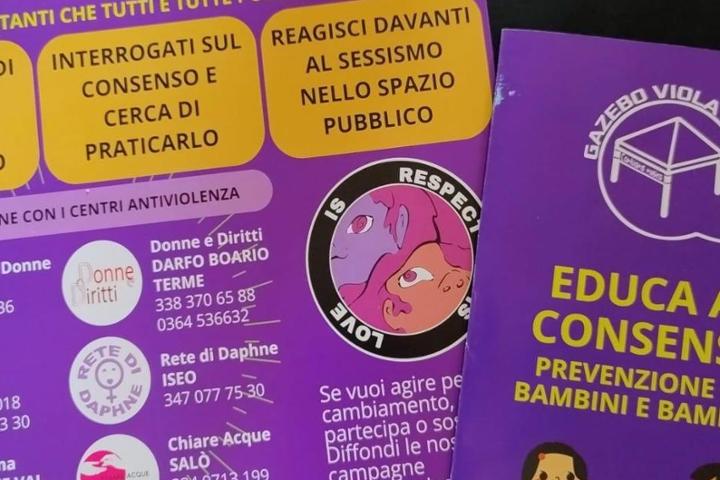 Ad ogni grande evento a cui partecipiamo con il Gazebo Viola distribuiamo volantini, adesivi e piccole guide cartacee per informare e sensibilizzare le persone verso una maggior consapevolezza di come tutte e tutti possiamo fare la nostra parte per rendere sicuri gli spazi che attraversiamo nella nostra quotidianità. Sul nostro profilo Instagram potrete monitorare le nostre uscite e vedere i materiali che produciamo per le nostre campagne.