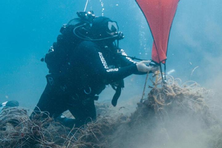 Ghost Diving es una iniciativa global para la extracción de artes de pesca abandonadas en el mar. "Ghost Fishing" o Redes Fantasmas son una contaminación plástica en los océanos, abandonadas o perdidas en el mar, se enredan en arrecifes o flotan a la deriva atrapando especies marinas, causando laceraciones, infecciones, sofocación, arranca corales y Posidonia. Este ciclo de muerte no termina hasta que se saca la red del mar. Contáctanos también por WhatsApp en +34 668837388. ¡Gracias!