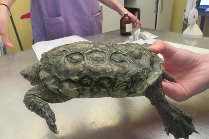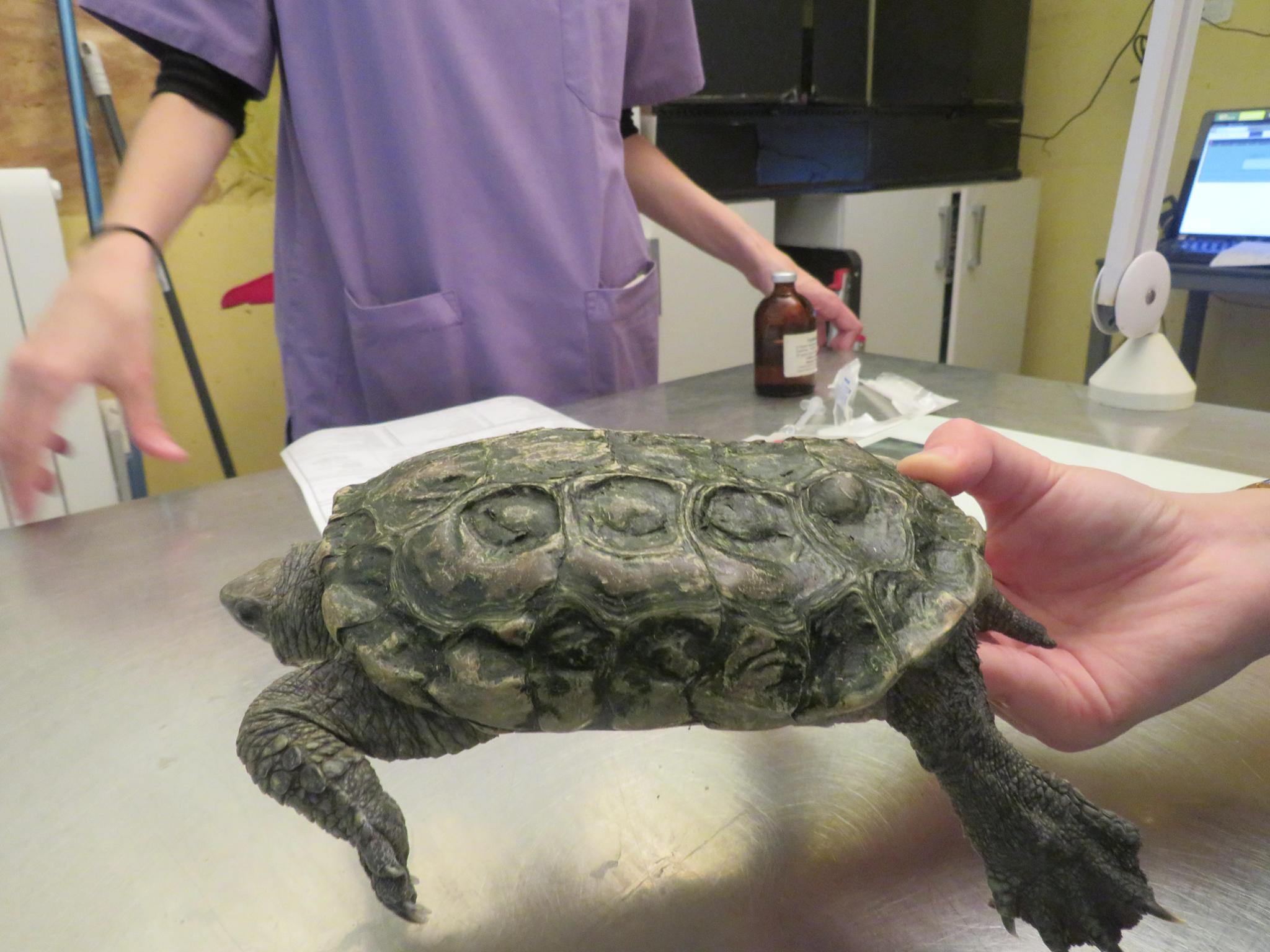 En la foto un galápago con el caparazón terriblemente deformado por una deficiente alimentación y por las condiciones inadecuadas en las que se tuvo.