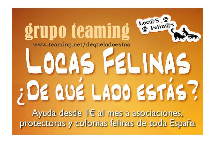 Con sólo 1€/mes colaboras a que podamos ayudar económicamente a protectoras de toda España. Esterilizaciones de gatos de colonias, aportaciones para afrontar costosas cirugías y tratamientos veterinarios, pienso y material necesario para protectoras con refugio... ¡Anímate! Es rápido, sencillo y sin comisiones. Podéis ver lo que hacemos y a qué casos destinamos el dinero en http://forolocasfelinas.creatuforo.com y en nuestro Facebook.