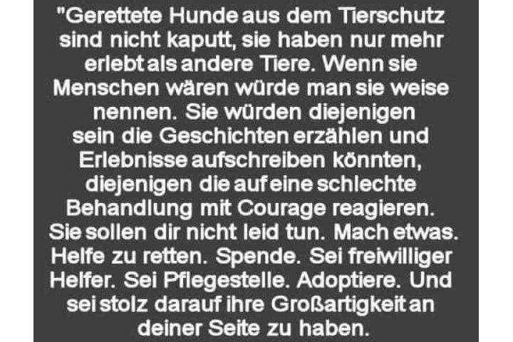 Und besonderen DANKE und Respekt allen Menschen, deren Herz für einen Tierschutzhund schlägt und die ihm ein verlässlicher Partner an der Seite sind - für den Rest seines Lebens, egal was es mit sich bringt