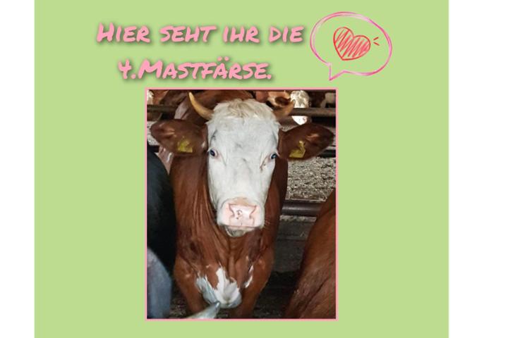 Nachdem nun die Spendenziele für die ersten drei Mastfärsen tatsächlich erreicht wurden, und CHAYA von S. mit A. und LINDA von G. patenschaftlich versorgt werden, SALLY nun 85€ ihrer Versorgungskosten abgedeckt bekommt, möchte ich Euch die vierte Mastfärse vorstellen.