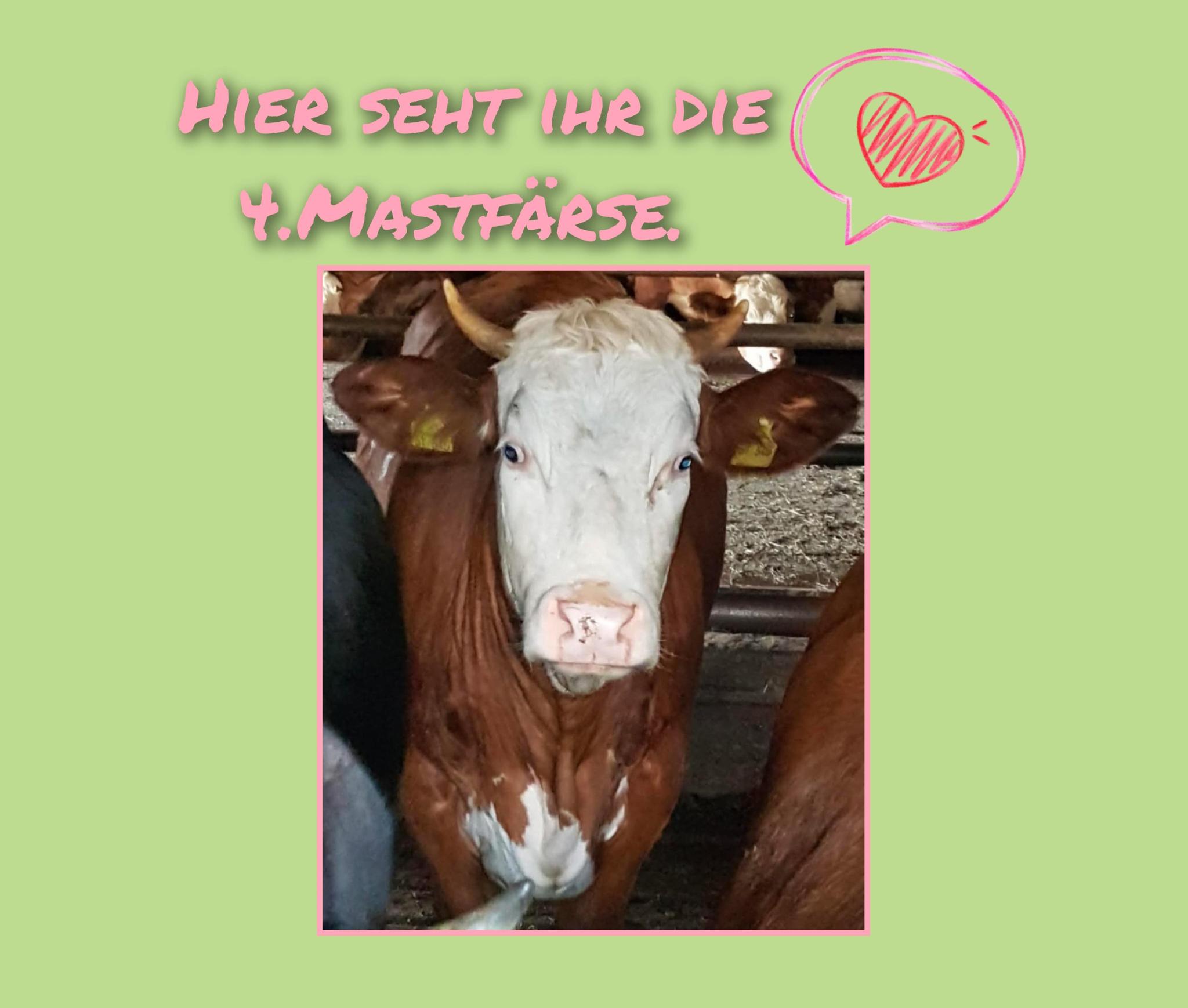 Sie ist eine der noch übrigen 4 Mastfärsen und sie sucht - wie alle anderen Hilfe. Leider ist sie auch noch eine „Fleischrasse“ und damit bringt sie noch mehr Gewicht auf die Waage, dass der Landwirt von uns oder vom Schlachter bezahlt haben will…
