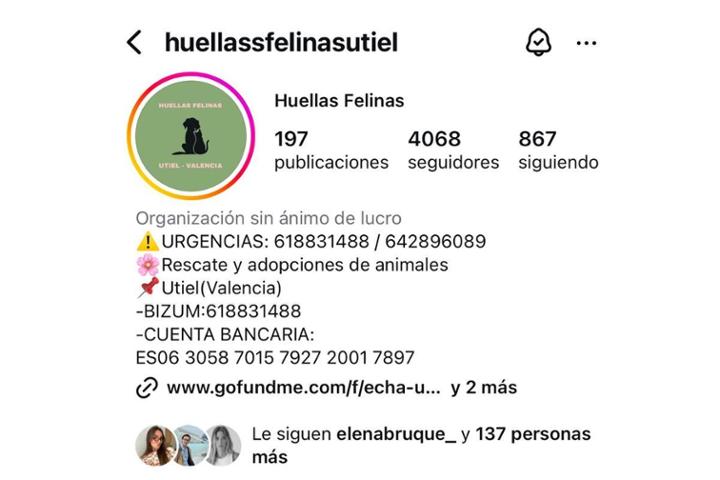 Huellas Felinas de Utiel es una protectora de animales ubicada en Utiel (Valencia). Perdimos nuestro refugio con la Dana y, actualmente, operamos con casas de acogida. Difundimos continuamente a todos nuestros rescates y buscamos acogidas y adopciones todo el tiempo.