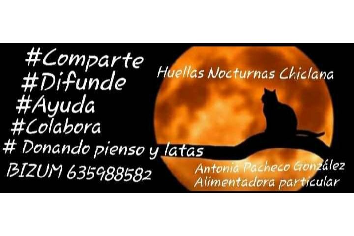 SOY ANTONIA PACHECO GONZÁLEZ Y ALIMENTADORA PARTICULAR DE COLONIAS DE HUELLAS NOCTURNAS CHICLANA Y OS INVITO A QUÉ COLABOREIS, AYUDÉIS Y DONEIS UN 1€/MES A MI GRUPO TEAMING EL DINERO RECAUDADO VA DESTINADO ÍNTEGRAMENTE A COMPRAR SACOS DE PIENSO Y LATAS PARA LOS GATOS CALLEJEROS QUE ALIMENTAMOS DIARIAMENTE Y SI SE PUEDE INTENTAR TAMBIÉN REALIZAR LAS ESTERILIZACIÓNES Y CASTRACIONES CON UN GRANITO DE CADA UNO DE VOSOTR@S SE PUEDE TODO POR Y PARA ELLOS !!!