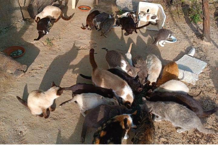Ayúdame con la alimentación de esta colonia felina de más de 20 gatos senior a la que llevo más de 10 años alimentando por mi cuenta. Muchas gracias