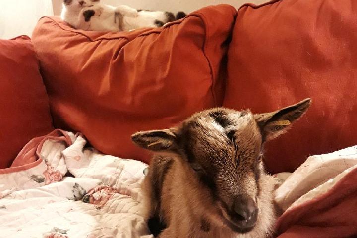 Kermiaoum est un petit sanctuaire en Bretagne où vivent des chats, des chèvres et un veau sauvés de labattoir ou de labandon.