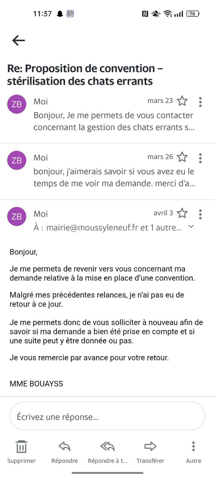 Bonjour à tous, Des dizaines de chats naissent et souffrent chaque année… J’agis bénévolement sur 4 communes : stérilisation (30 à 0/an), soins et sauvetages. Aujourd’hui, je finance tout seul(e). 1 € peut vraiment faire la différence pour éviter la prolifération. Merci pour votre aide