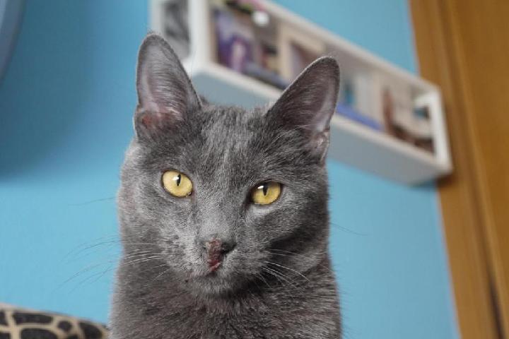 Fue rescatado de la calle un día de lluvia, estuvo apunto de perder un ojito ya que tenía una gran infección, pero ahora ya esta totalmente recuperado y buscando una familia, como se puede ver le encanta hacerse selfie, es muy mimoso y jugueton se lleva bien con gatos y perros, peces y humanos