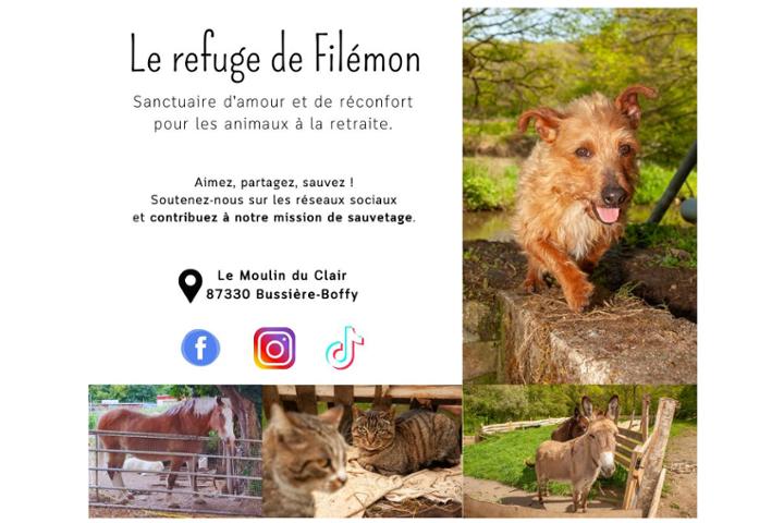 Sanctuary for abandoned or mistreated elderly animals. We take in about 230 animals of all kinds to allow them to spend their final days surrounded by love. If we can offer them the best possible life, it is only thanks to your donations, as we receive no subsidies. To contribute to the happiness of Filémon's refugees, you can sign up on Teaming. And remember… Our haven of peace exists thanks to your support and shares.