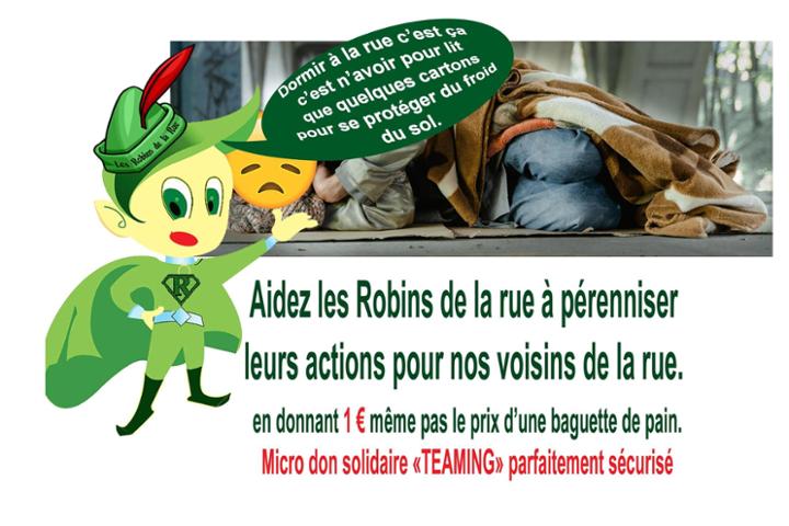 "Les Robins de la rue" est une association régie par la loi du 1er Juillet 1901 ayant pour mission d'apporter aide et soutien aux personnes en situation de précarité et plus particulièrement aux personnes à la rue.