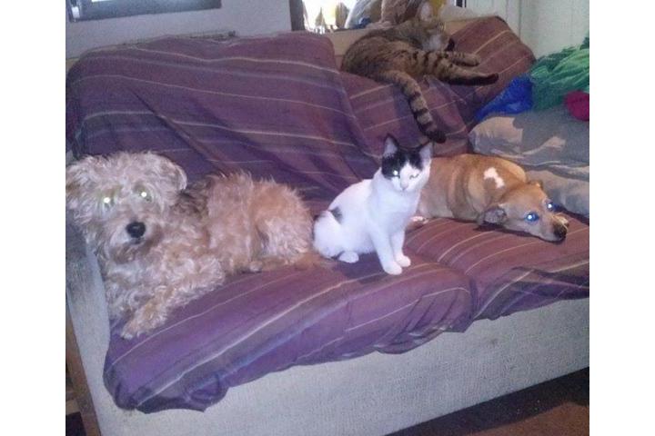 En casa tenemos recogidos 7 animales de la calle entre perros y gatos eso supone unos gastos bastantes elevados entre comida gastos veterinarios y demas,si no tenemos ayuda de otro tipo sera muy dificil seguir dandoles una calidad de vida optima como ellos merecen por eso he decidido hacer este teaming por que ahora ademas tenemos una perra con un problema de cadera que quizas haya que operar con lo que eso va a suponer de gastos añadidos a todos los demas