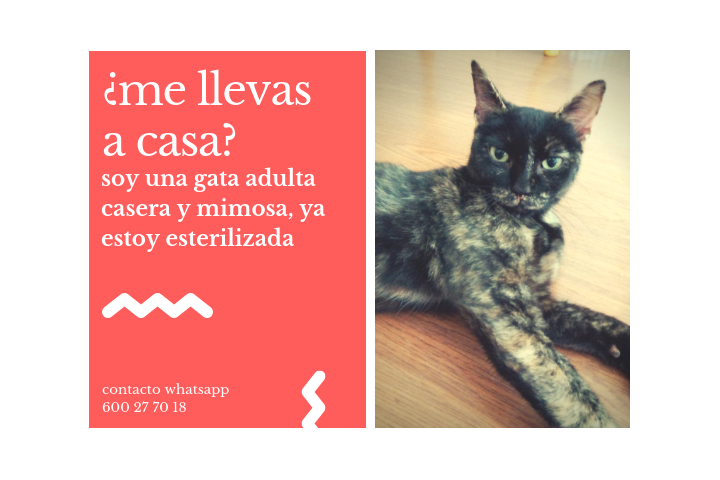 Esta primavera cumplirá un año y la tenemos en acogida temporal en la sede de MUTI mientras alguien la adopta.
