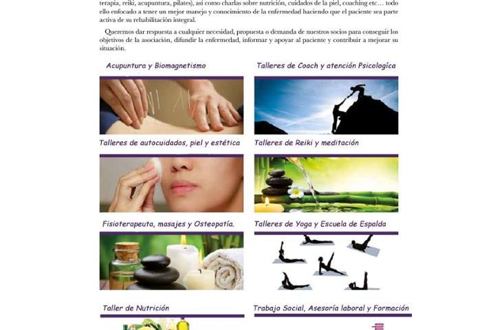 Ayudar a los enfermos de Lupus y enfermedades autoinmunes a saber llevar su enfermedad, utilizando los siguientes recursos y dándoles así una mejor calidad de vida. ASISTENCIA PSICOLÓGICA; ASESORÍA DE TRABAJADORA SOCIAL; TRABAJADORA LABORAL; TRAMITACIONES DE SOLICITUDES PENSIONES, ETC..; CURSOS; INFORMACIÓN SOBRE LA ENFERMEDAD, TRATAMIENTOS, ESPECIALISTAS, ETC...; TALLERES (AUTOESTIMA, MANUALIDADES, GIMNASIA..); SERVICIOS DE REHABILITACIÓN Y FISIOTERAPIA; FORMACION E INFORMACION SOBRE EL LUPUS