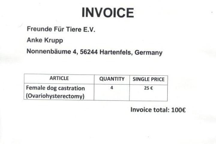 Ende Dezember steht die nächste Auszahlung an, dieses Mal möchten wir die einen Teil der gesammelten Spenden an unseren Partnerverein Herzenstiere Europa e.V. weiterleiten, da dort momentan wieder eine Sammelaktion für die nächsten Kastrationen läuft.