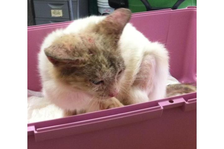 Grazie al vostro contributo ho potuto comperare del cibo umido e traverse per gli animaletti del mio rifugio. Ho tante spese giornaliere e vi ringrazio con tutto il cuore per alleggerirmi un po’. L’ultimo recupero è la micia di nome Palmina che mi è venuta incontro chiedendomi aiuto sbucando dal nulla. Gatto bianco, carcinoma alle orecchie e purtroppo, sembra tanto altro. Grazie per aiutarmi.