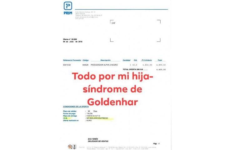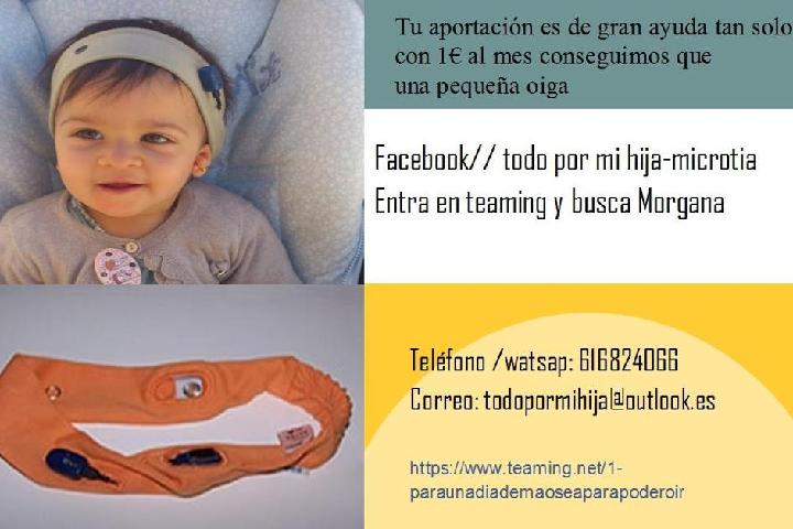 Morgana es una niña con un síndrome llamado Goldenhar, también conocido como displasia oculo auriculo vertebral (OAV), es una enfermedad poco frecuente caracterizada por la triada, normalmente unilateral, de microsomía craneofacial, quistes dermoides oculares y anomalías espinales. Necesitamos múltiples sesiones de logopeda y psicólogo ya que este año le han diagnosticado TOC en el hospital Peset de Valencia. También tenemos unos costes añadidos al mantenimiento del procesador que lleva