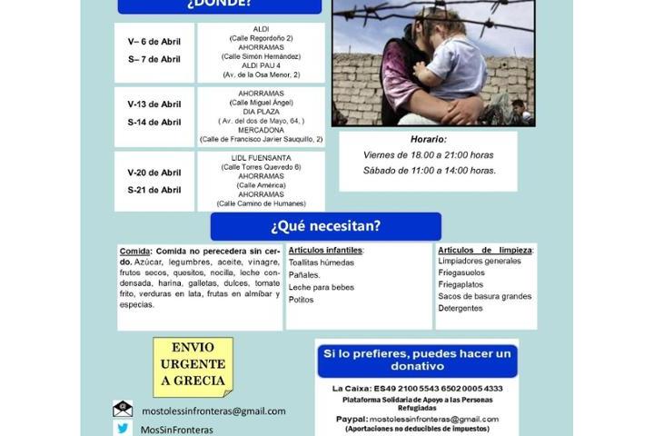 Los fondos recaudados irán destinados a paliar necesidades urgentes que nos indiquen nuestros contactos en el terreno y al envío de las recogidas de ayuda humanitaria y voluntarios de Móstoles Sin Fronteras, así como financiar acciones en Móstoles.