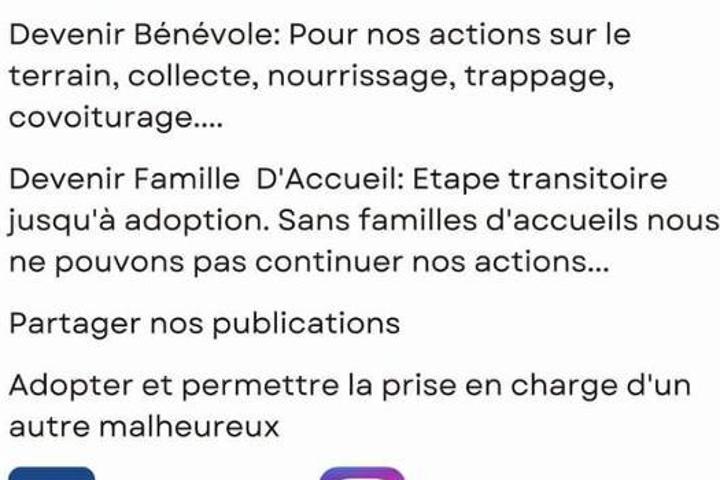 Association de protection Féline d'intérêt général, basée en Creuse. Nos zones d'intervention sont Creuse Confluence, le Val d'Oise, l 'Oise et la Vendée. Nos actions visent à nourrir les chats errants, les soigner, les identifier, les stériliser et les sociabiliser en famille d'accueil en vue d'une adoption. Protéger, secourir, stériliser et informer. Pour mener nos actions nous avons besoin d'aide. Merci
