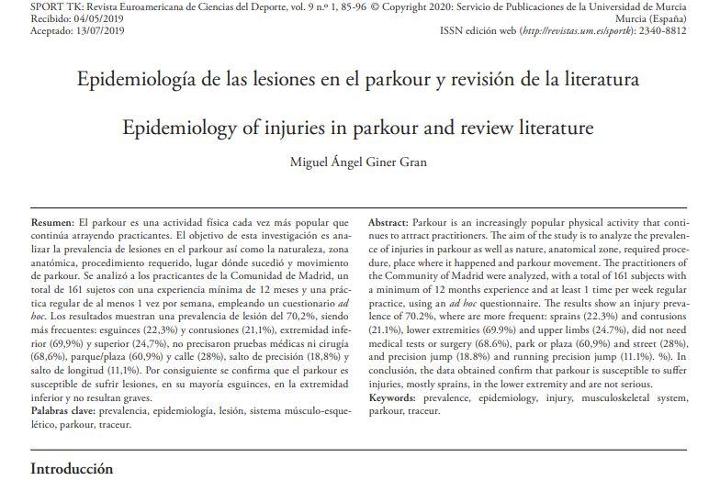 ¡Otro estudio más que hemos finalizado! "Cuál es la Población de Parkour actualmente en España: Análisis Demográfico". En esta investigación hicimos un sondeo en profundidad por todo el territorio español, buscando y registrando a todos/as los/as practicantes de parkour que hay a día de hoy en nuestro país junto más información práctica: practicantes por provincias, número de gimnasios de parkour, asociaciones de parkour encontradas, etc... En nuestra web tenéis acceso al artículo completo: