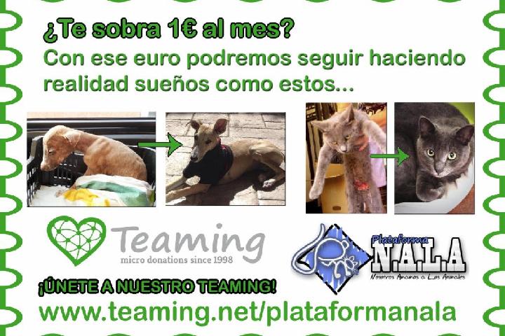 Somos una asociación protectora de animales sin ánimo de lucro que lucha día a día por los derechos de los animales rescatándolos y buscándoles un hogar. Muchos de ellos heridos, enfermos, maltratados... Con tu microdonativo mensual podremos hacer el sueño de estos animales realidad. ¡ÚNETE A NUESTRA LUCHA! www.plataformanala.org