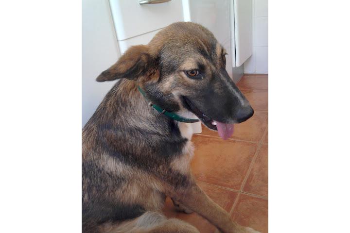 Uve, un podenquito recogido en condiciones terribles, famélico y aterrado.