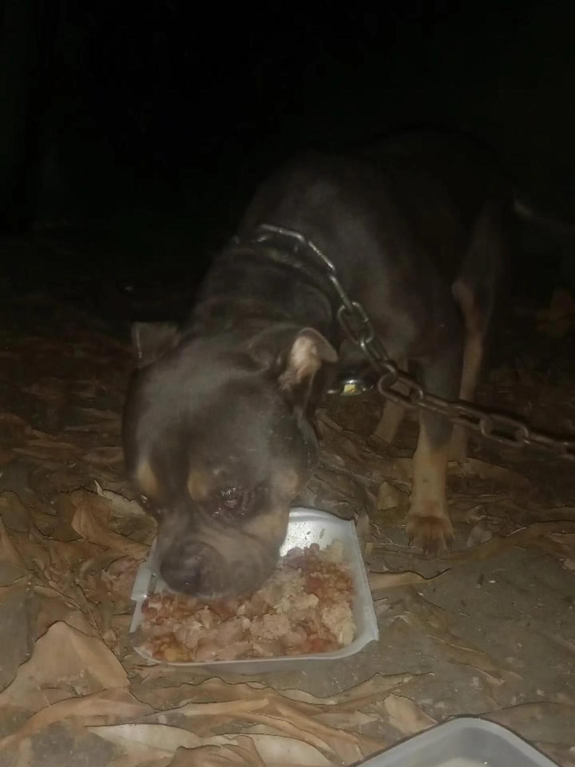 2. Hund mit von Maden zerfressenem Gesicht.