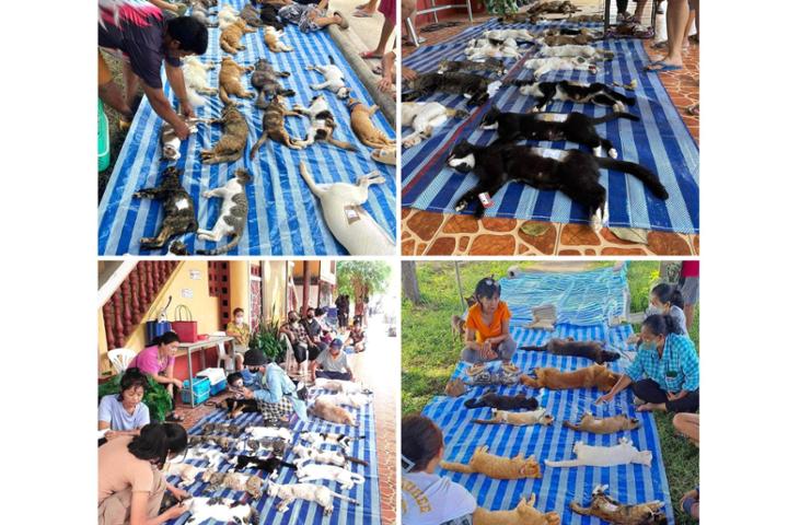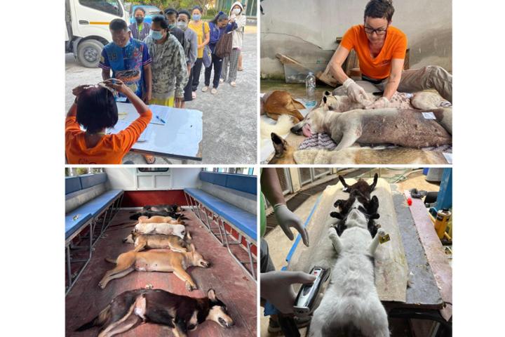 Our goal is to reduce the population of stray dogs and cats in Thailand through sterilization and to relieve these animals of pain, itching and hunger as much as possible. We organize sterilization days every month. We go to villages outside Hua Hin, where normally little or no help is available. With a team of veterinarians, an average of 100 animals are helped per day. Thai volunteers also care for and feed many stray dogs every day and we support them where possible, including at temples. Medical care is provided on location with the help of local veterinarians and assistants, in addition to sterilization and vaccination.