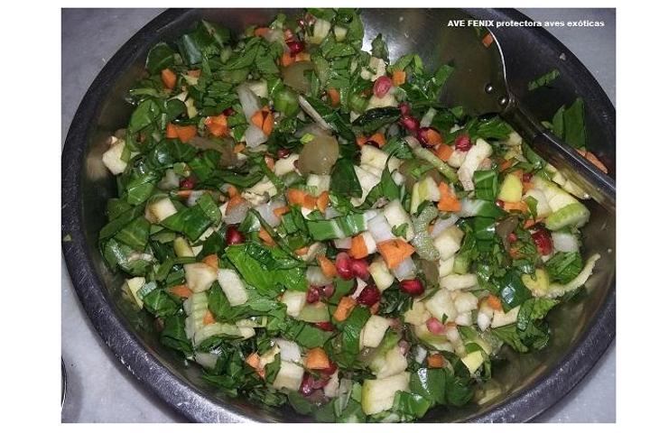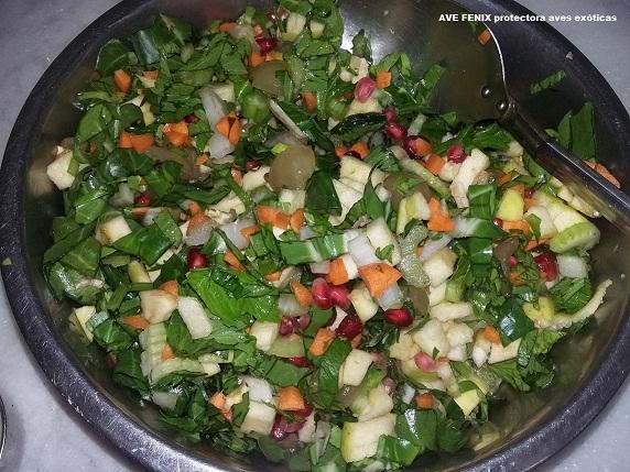 Hoy subo foto de la ensalada cortada en pequeño, para las aves de tamaño mini: